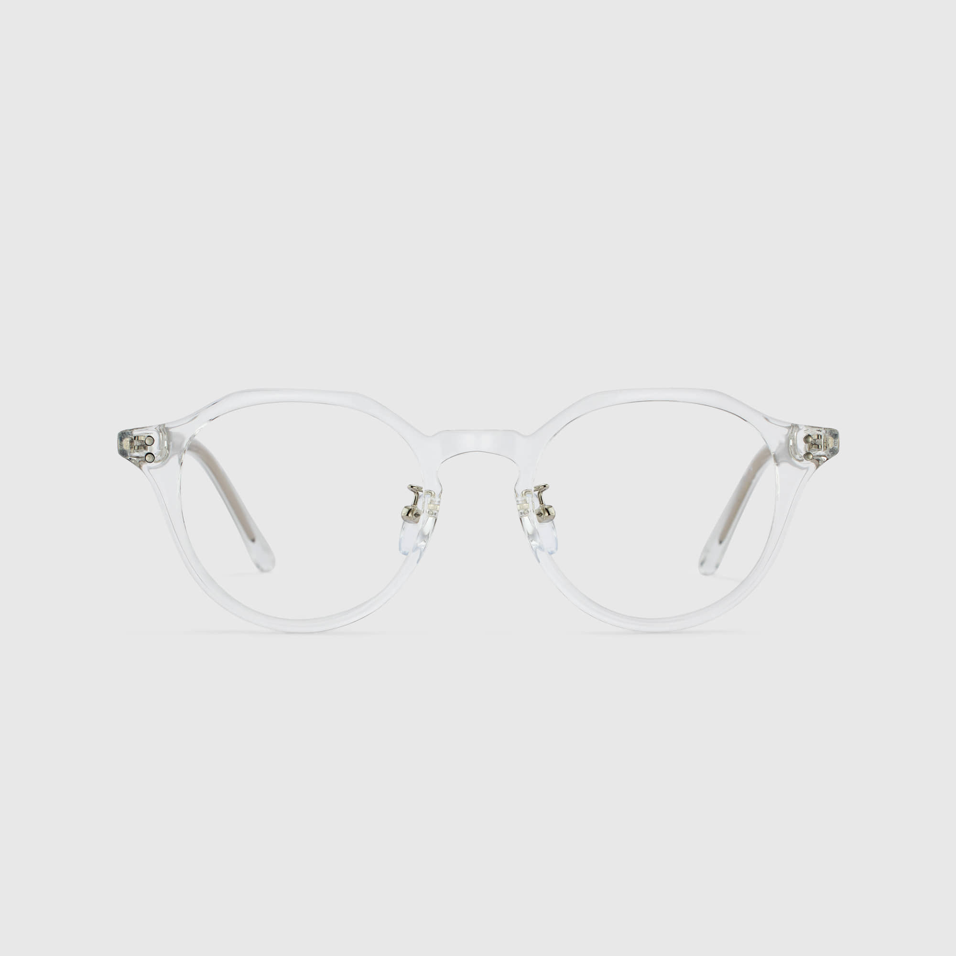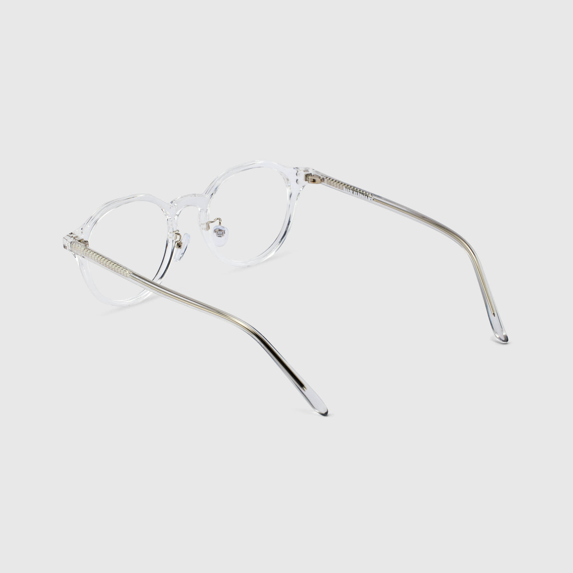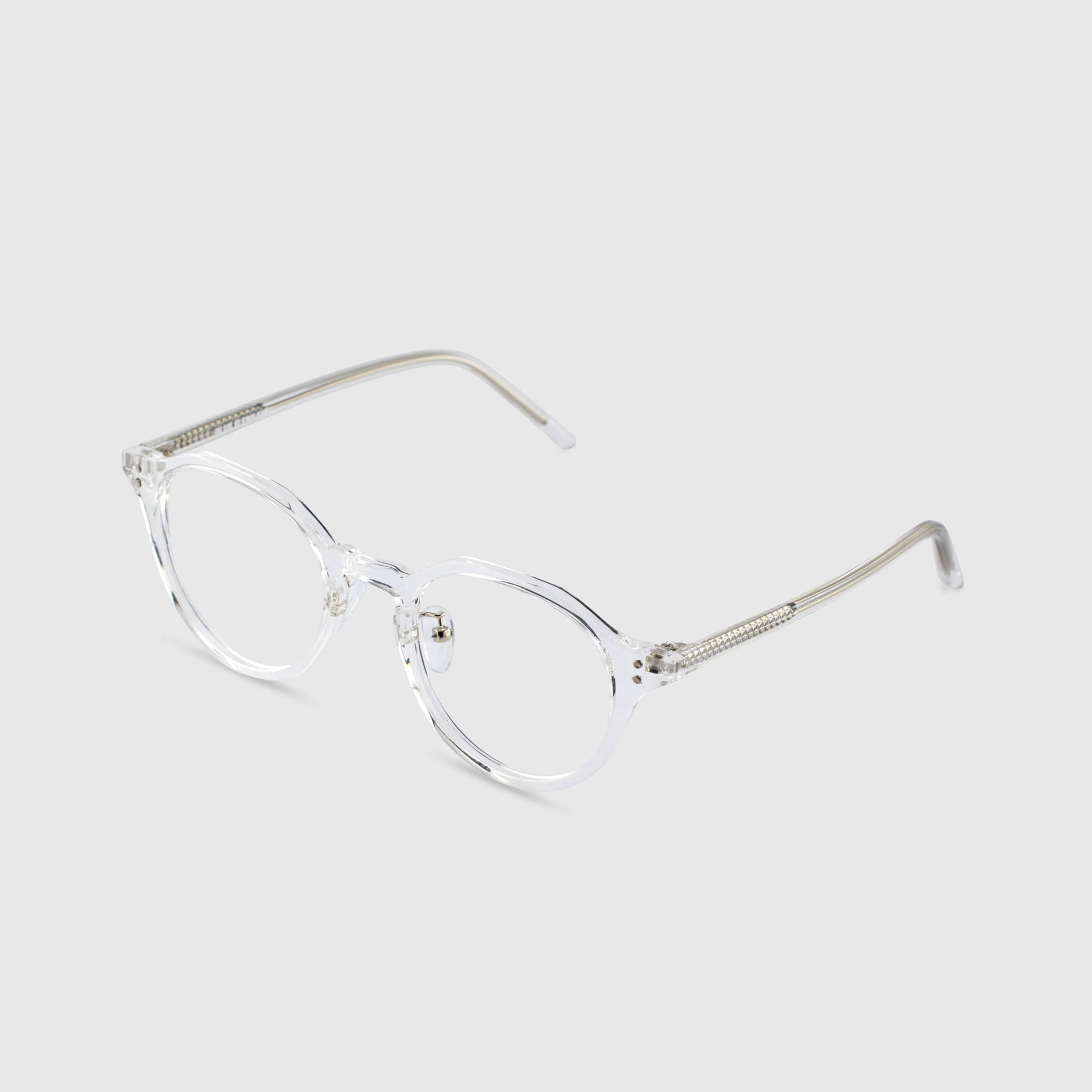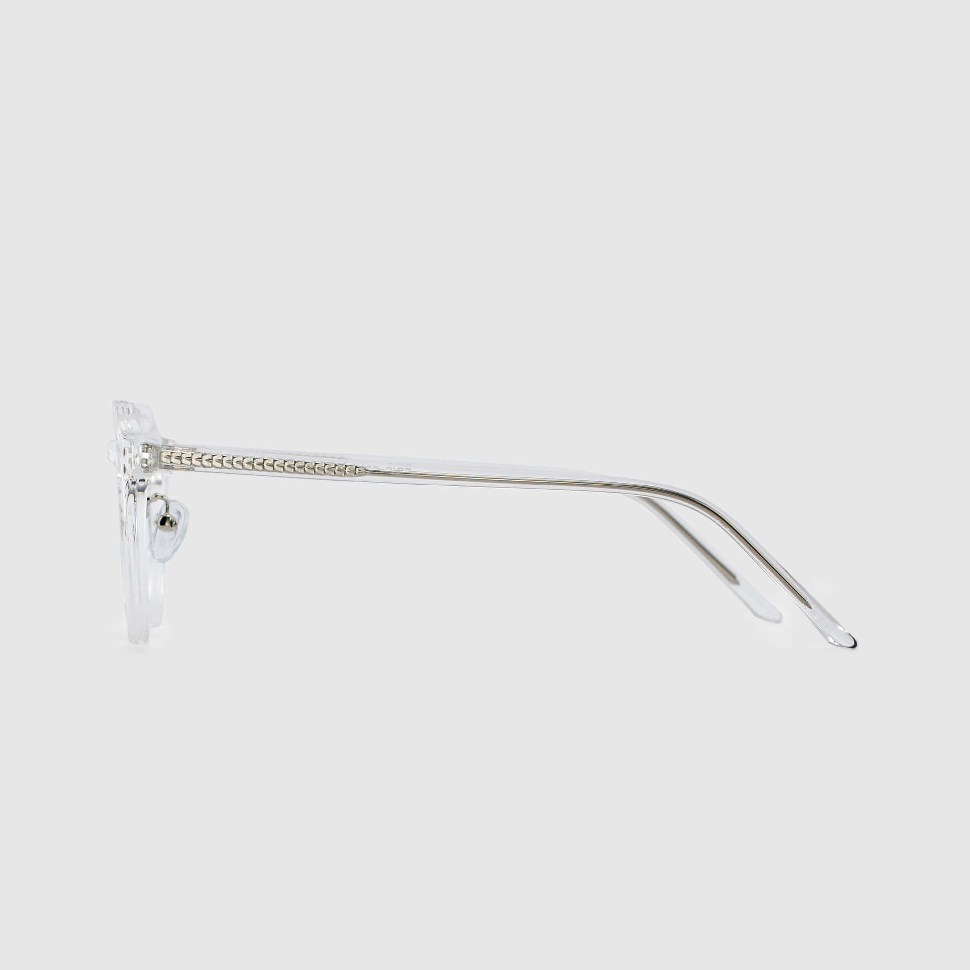 Eyeglasses with a clear crystal frame that balances minimalism and bold design. Lightweight and modern, ideal for a clean aesthetic.