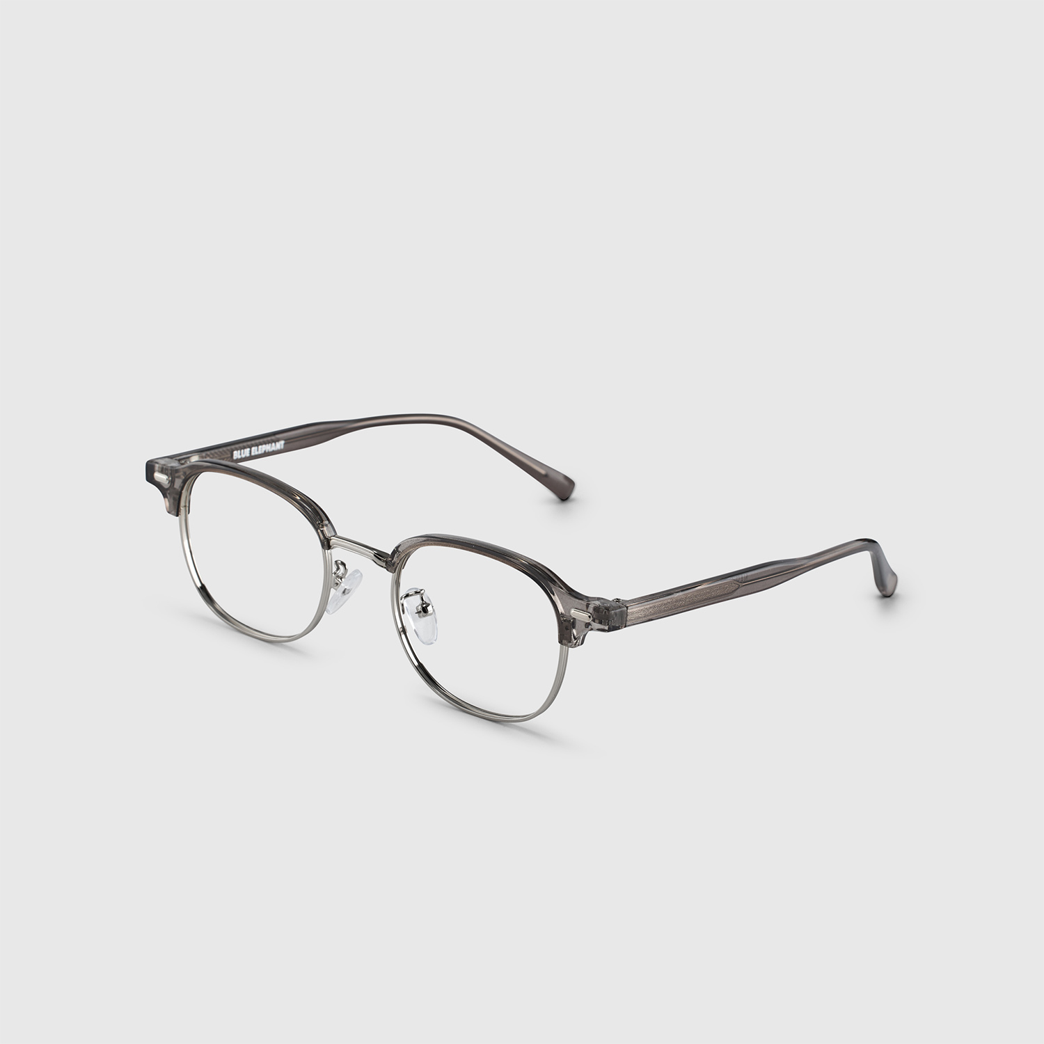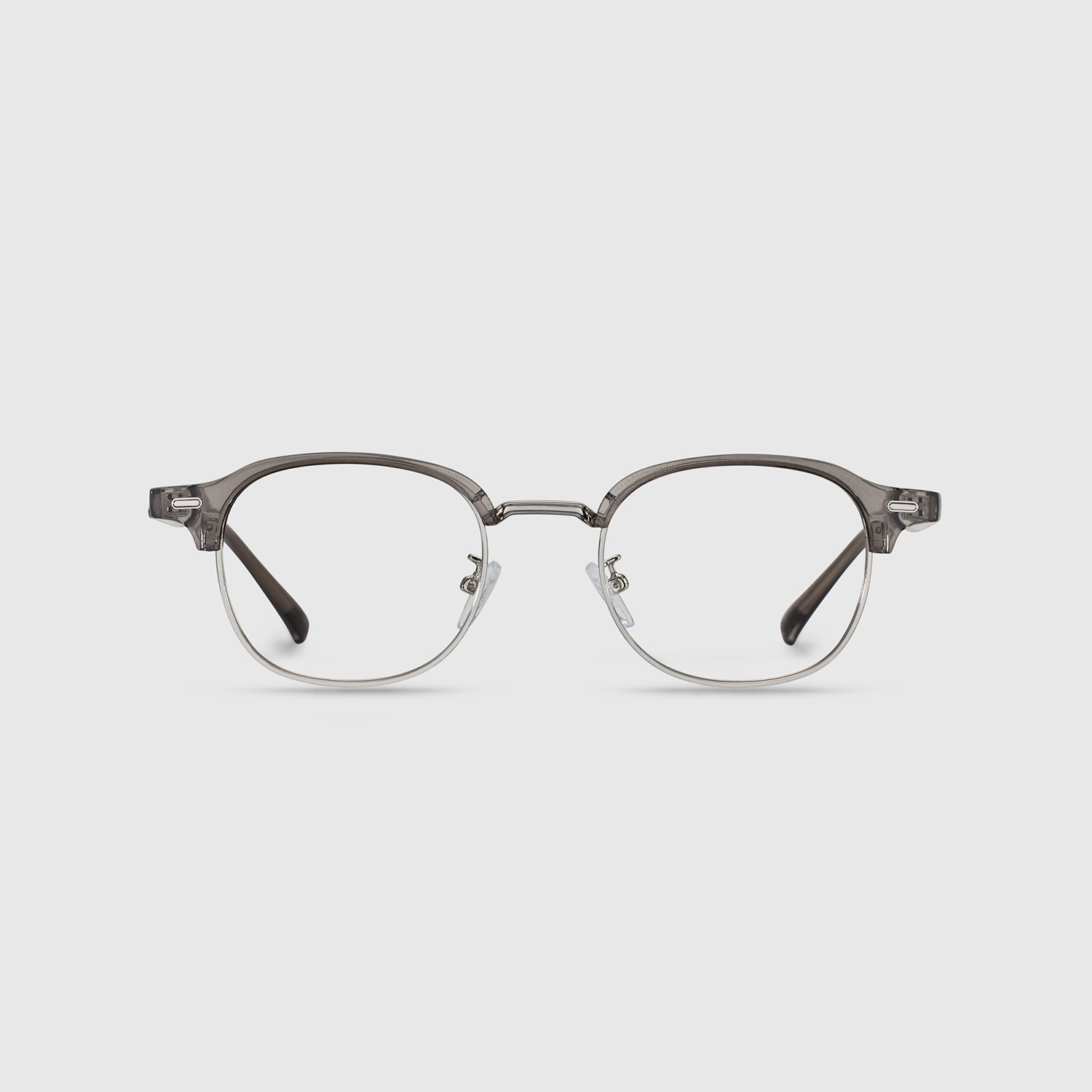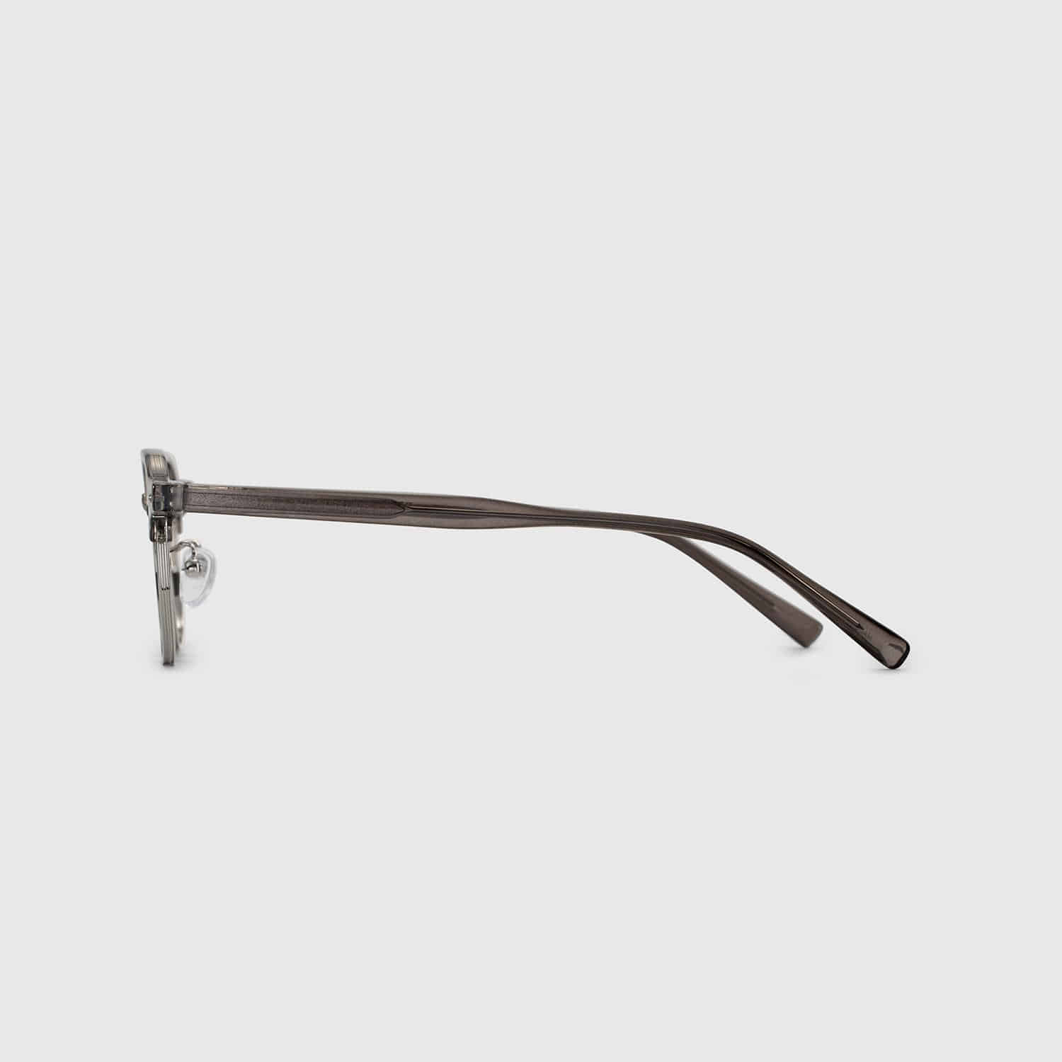 Eyeglasses with a slim gray frame, balancing subtle design with everyday practicality. Minimalist and versatile for any look.